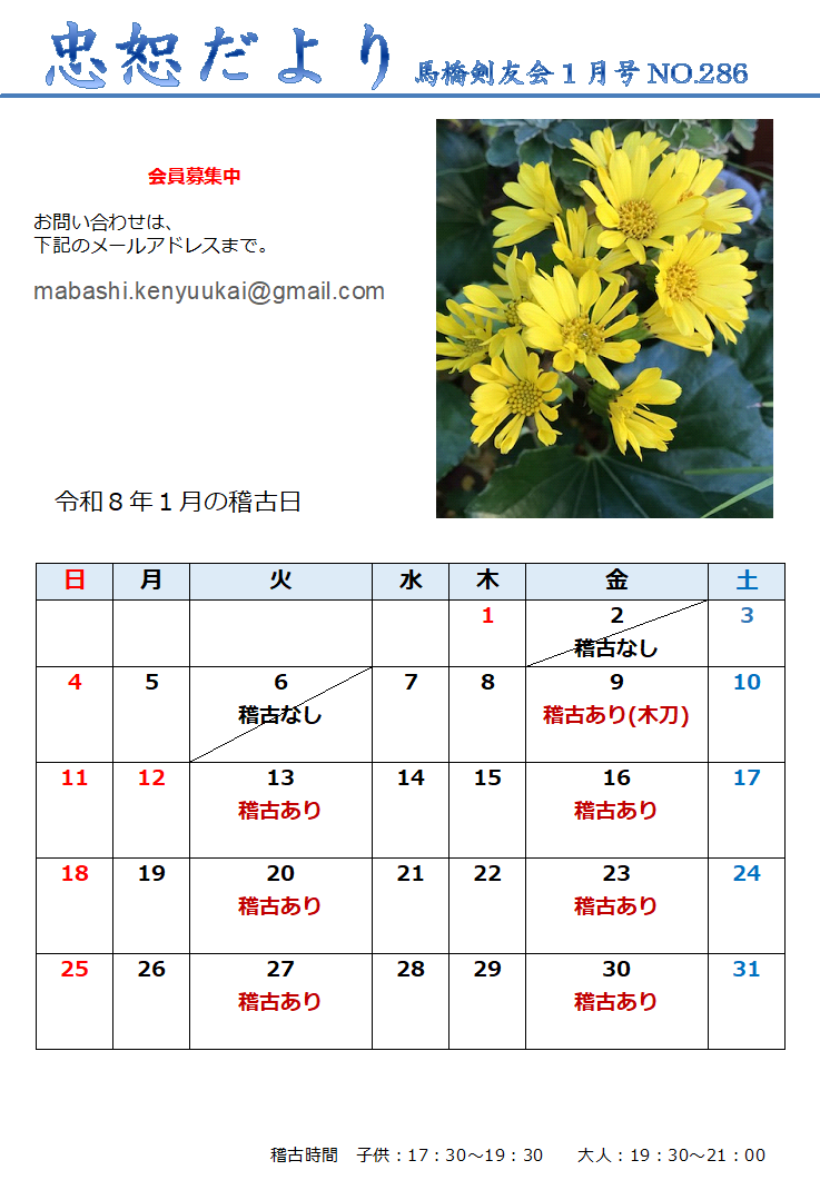 HOME>今月の稽古日
